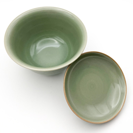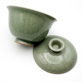 龍泉窯の劉傑大師による柴窯(薪窯)の蓋碗です。 劉傑大師は若くして中国伝統工芸大師、麗水市工芸美術大師となった非常に優秀な作家です。APECやG20、一路一帯といった国賓を迎えて行われる晩餐会で使用される食器の制作や浙江省博物館の青瓷技芸復元プロジェクトを任されるなど、龍泉窯の中でも技術の高い作家として知られています。 彼自身、お茶が好きということもあり、非常に使いやすい茶器を創り出します。美しさだけでなく、細部までこだわり抜いた精密さは使いやすく、美味しくお茶を淹れることができる稀有な作品を生み出しています。 この作品は全く欠点のない窯玉とされました。刻花による花の文様が美しく、品格のある素晴らしい作品です。 また、現在、劉傑大師自身が青瓷技芸復元プロジェクトに専念している状態になるため、個人の作品作りがほとんど行われていません。特に刻花作品の制作は大変時間を要することもあり、今回の入荷以後の刻花作品は新作が出るまでありません。 作家によっては型を使用して作品を制作することがありますが、彼の作品は基本的に型は一切使用せず、全て自らの手で作り上げています。またこの作品は柴窯(薪窯)であるため、ガスと違い、登り窯の内部全てを同じ温度で焼き上げることは不可能です。そのため1つ1つ色合いや造形は異なり、同じものは2つとありません。 作品を実際にご覧になりたい方は弊店サロン(東京都新宿区四谷)にて承ります。その場合はお問い合わせください。(ご予約制) この作品には受皿はありません。