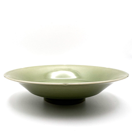 もともとはかつて中国浙江省にあった越州窯を起源とする釉薬で、陸羽の茶経にお茶を美味しく楽しめる茶器としての紹介が記述されています。日本へも平安時代には持ち込まれていたらしく、源氏物語などにその記述が出てきます。また、日本の染物の色の名前にある「秘色」は、この青磁釉に由来しています。東洋で最も古い磁窯と言われ、龍泉窯の前身にあたります。