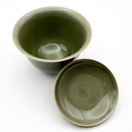龍泉窯の劉傑大師による柴窯(薪窯)の蓋碗です。