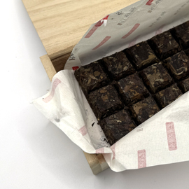 白茶で有名な産地、福建省福鼎で2009年に作られた貢眉を福鼎点頭鎮で後熟成を行い、2019年に巧克力餅(チョコレート形の固形茶)へ加工しています。品質の高い寿眉である貢眉を長期間後熟成を行い、更に固形茶へ加工することで、より柔らかく美味しい白茶に仕上がっています。 白茶に限らず、散茶よりも固形茶の方がより柔らかく深みのある味わいになります。これは固形茶へ加工する際の工程によるものです。散茶として一度製茶をしたお茶を固形茶にするためには、もう一度茶葉を柔らかく戻す必要があります。布袋などに1個分の散茶を入れ、蒸気で軽く蒸します。この「軽く蒸す」という工程が、茶葉の持つ味わいや香りを大きく変化させるほどではないものの、若干の蒸気が当たることで、より柔らかく深みを増すように作用します。 深みのある甘い花香と長期間の後熟成による薬香が微かに感じられます。味わいは深く柔らかな圧倒的な甘味が素晴らしく、素直で複雑な滋味、ミネラル感など、奥行きのある美味しい白茶に仕上がっています。煎持ちが良いのも特徴的です。止め時が分からなくなるほど、ずっと甘く美味しい白茶をお楽しみいただけます。 固形茶ということもあり、洗茶をしてからお楽しみください。古い白茶であることもあり、1回もしくは2回行います。 1箱100g 巧克力餅(チョコレート形固形茶) ※ 数量限定となりますため、webショップ会員様限定での販売となります。ログインしてからお求めください。 ※ ネット上での転売目的のお求めはご遠慮ください。当店の方で該当すると判断した場合はご注文をキャンセルさせていただく場合もございますので、ご了承ください。(セミナーや店舗、サロンなどでの頒布、販売などは今まで通り問題ございません。) 販売価格(税別)