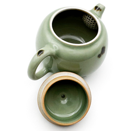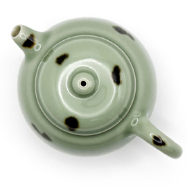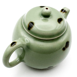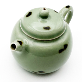 龍泉窯の劉傑大師による柴窯(薪窯)の茶壺です。 劉傑大師は若くして中国伝統工芸大師、麗水市工芸美術大師となった非常に優秀な作家です。APECやG20、一路一帯といった国賓を迎えて行われる晩餐会で使用される食器の制作や浙江省博物館の青瓷技芸復元プロジェクトを任されるなど、龍泉窯の中でも技術の高い作家として知られています。 彼自身、お茶が好きということもあり、非常に使いやすい茶器を創り出します。美しさだけでなく、細部までこだわり抜いた精密さは使いやすく、美味しくお茶を淹れることができる稀有な作品を生み出しています。 この作品は元代から龍泉窯に伝わる飛青磁です。この鉄斑を施した飛青磁は国宝「飛青磁 花生」などでも見られるように、昔から茶人に大変好まれてきた龍泉窯の伝統的な様式です。 作家によっては型を使用して作品を制作することがありますが、彼の作品は基本的に型は一切使用せず、全て自らの手で作り上げています。またこの作品は柴窯(薪窯)であるため、ガスと違い、登り窯の内部全てを同じ温度で焼き上げることは不可能です。そのため1つ1つ色合いや造形は異なり、同じものは2つとありません。 作品を実際にご覧になりたい方は弊店サロン(東京都新宿区四谷)にて承ります。その場合はお問い合わせください。(ご予約制) 専用箱、証明書付きです。